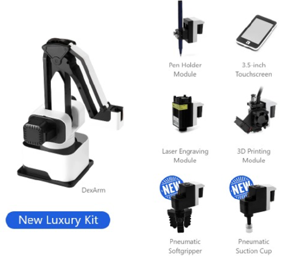 ALL-IN-ONE ROBOT ARM – A versatile kit capable of performing multiple tasks independently, including drawing and writing, laser engraving and cutting, as well as 3D printing.